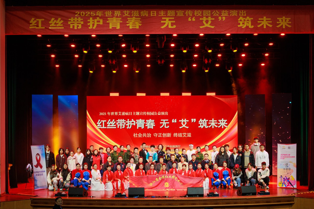 在第38个“世界艾滋病日”来临之际,由浙江省文化广电和旅游厅指导,浙江省性病艾滋病防治协会、杭州电子科技大学、浙江省金盾红丝带艺术团承办的“红丝带护青春,无‘艾’筑未来”校园防“艾”公益演出,11月30日晚在杭州电子科技大学下沙校区举行。杭州电子科技大学副校长周青出席活动并致辞,相关部门负责人及900余名师生观看了晚会。
