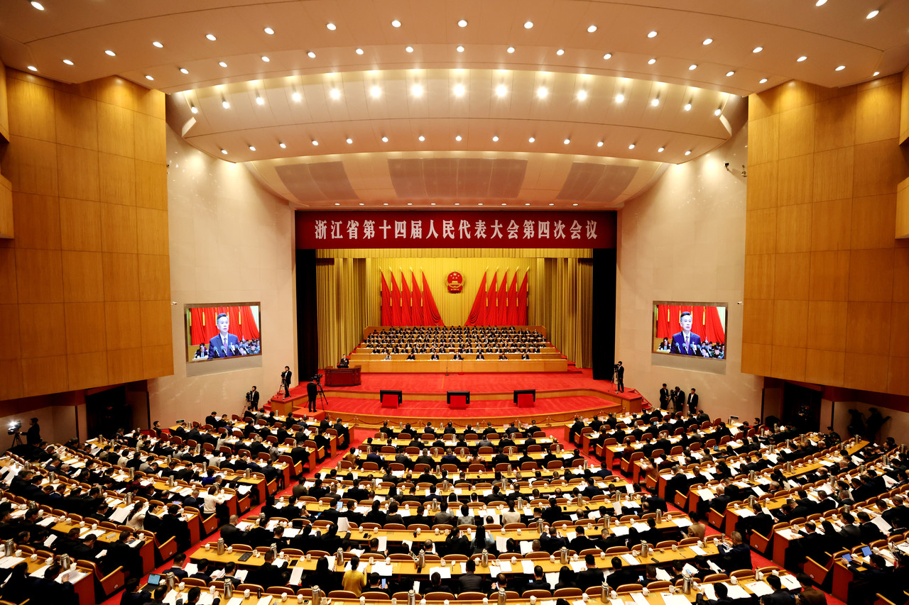 1月14日上午,浙江省十四届人大四次会议在杭州隆重开幕 潮新闻 魏志阳 胡元勇 摄